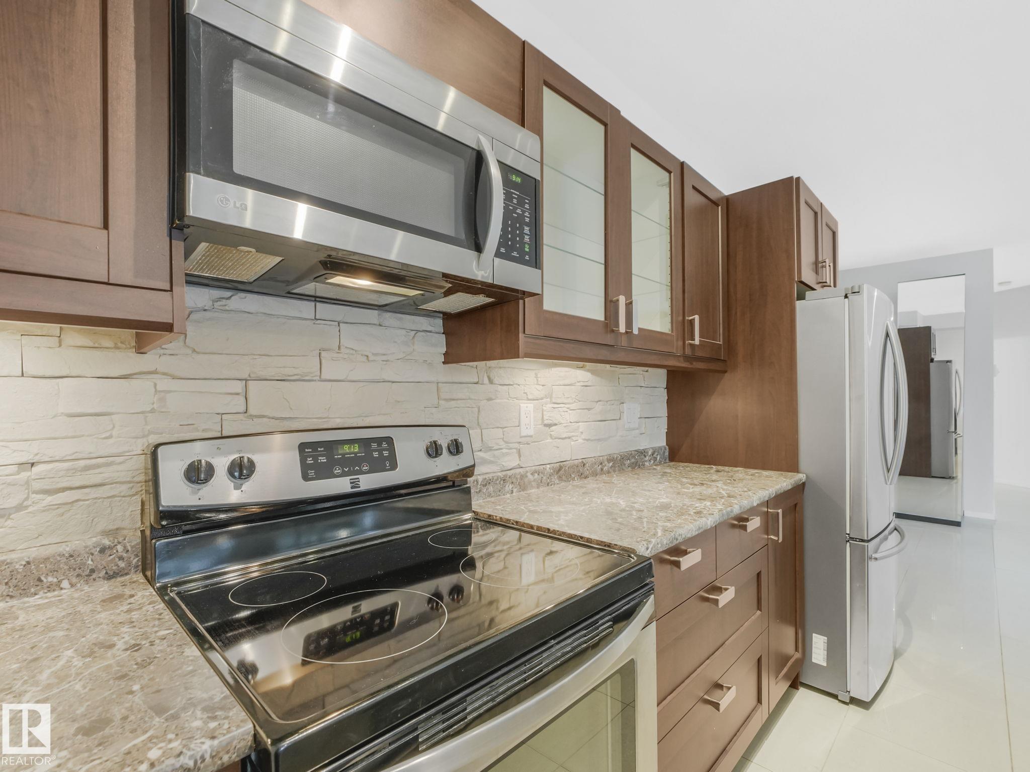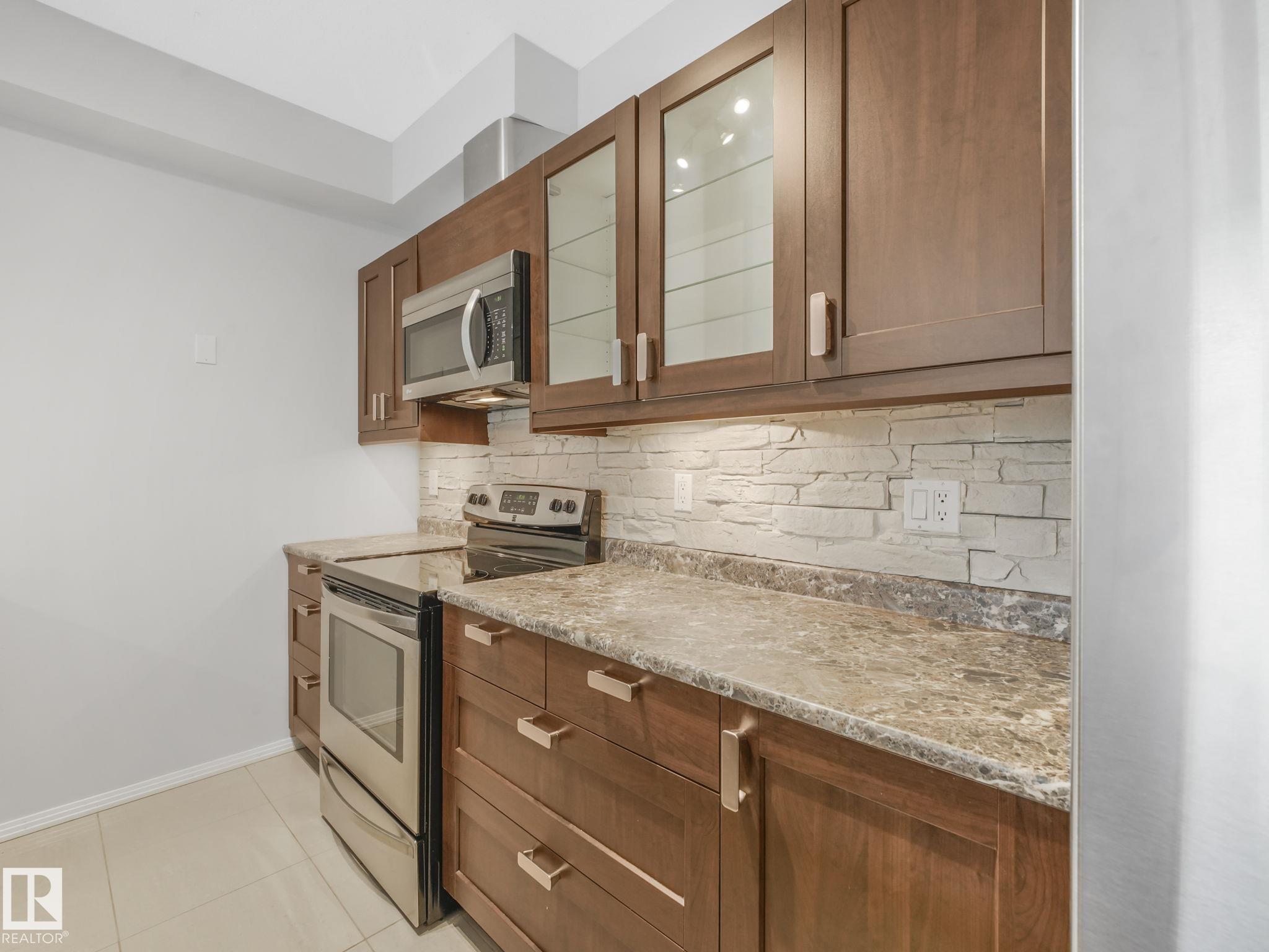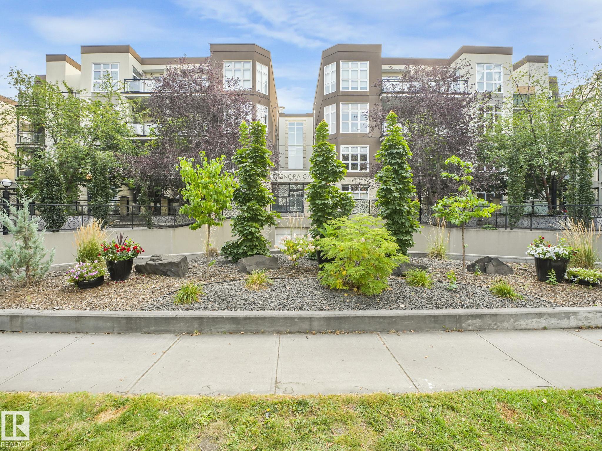 Executive Style on a budget. Welcome to this beautifully remodelled unit in Glenora Gates, which features 10' ceilings, easy-care ceramic tile floors, and a sleek designer kitchen with stainless steel appliances, upgraded countertops, and a custom backsplash. Relax on your south-facing covered balcony on a quiet, tree-lined street. With underground parking, storage, laundry, and an unbeatable location. Where Westmount charm meets Oliver convenience steps from the Brewery District, and the new west LRT line will be at the end of the block. Enjoy walkable access to grocery stores, coffee shops, restaurants, gym, public transit, and all the urban lifestyles of downtown living with the Ice District just minutes away. This spacious 900 sqft condo is a must-see!