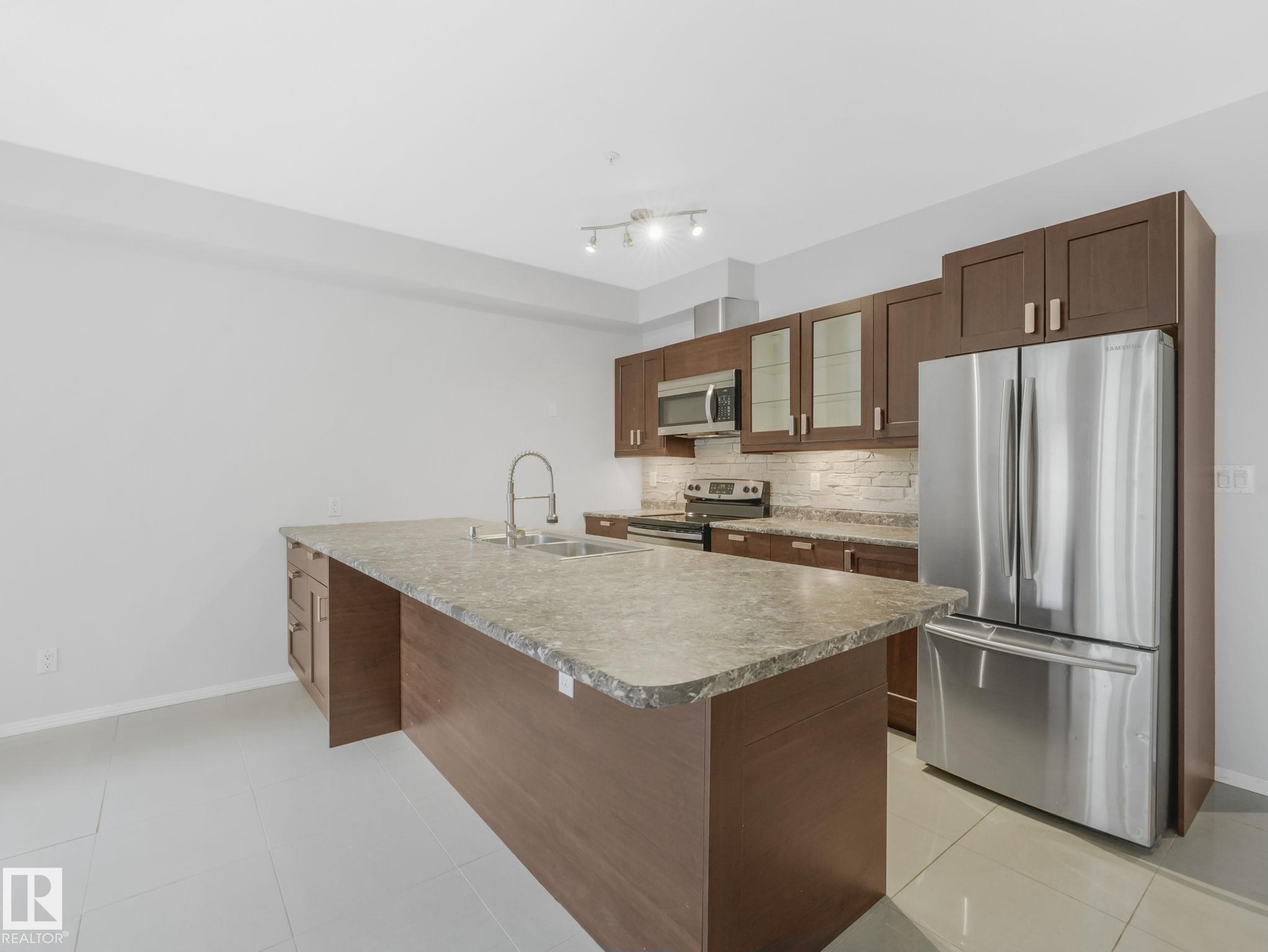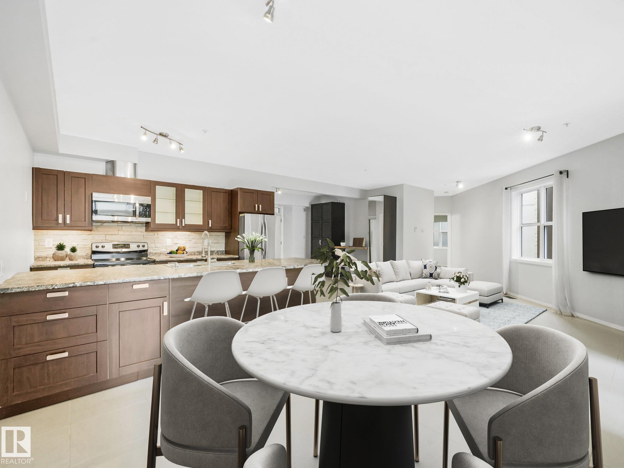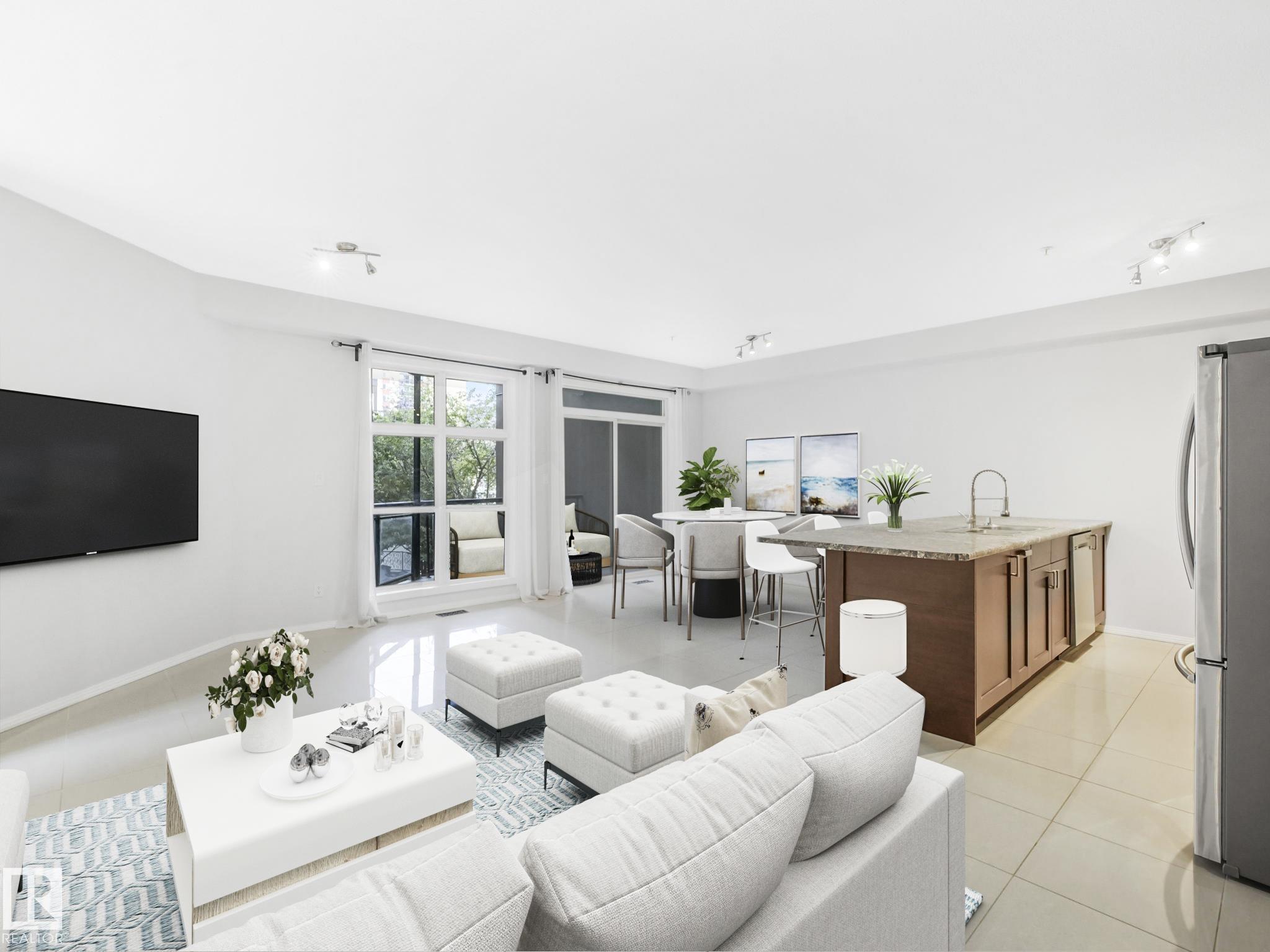 Executive Style on a budget. Welcome to this beautifully remodelled unit in Glenora Gates, which features 10' ceilings, easy-care ceramic tile floors, and a sleek designer kitchen with stainless steel appliances, upgraded countertops, and a custom backsplash. Relax on your south-facing covered balcony on a quiet, tree-lined street. With underground parking, storage, laundry, and an unbeatable location. Where Westmount charm meets Oliver convenience steps from the Brewery District, and the new west LRT line will be at the end of the block. Enjoy walkable access to grocery stores, coffee shops, restaurants, gym, public transit, and all the urban lifestyles of downtown living with the Ice District just minutes away. This spacious 900 sqft condo is a must-see!