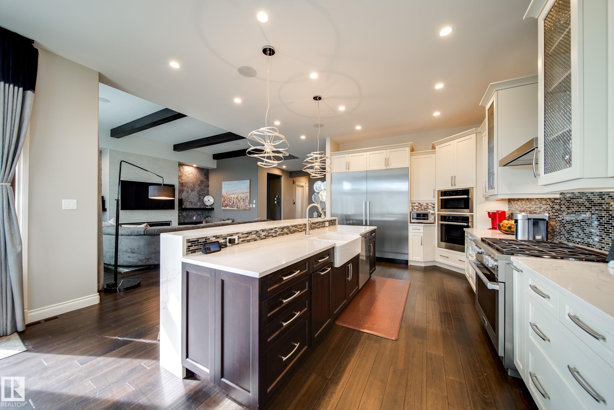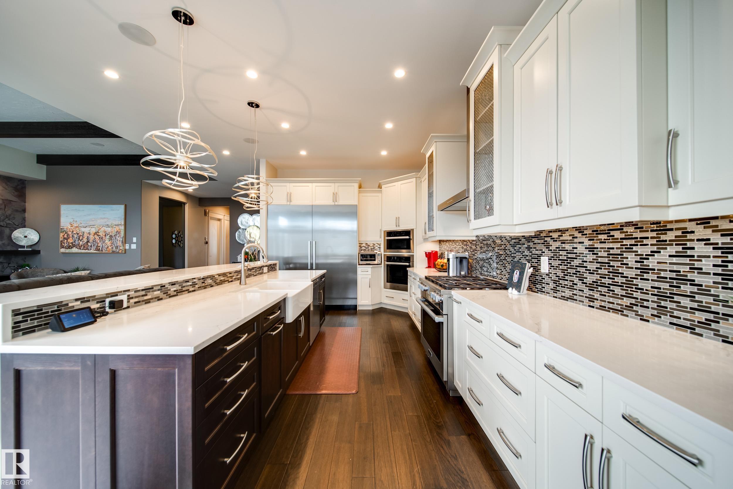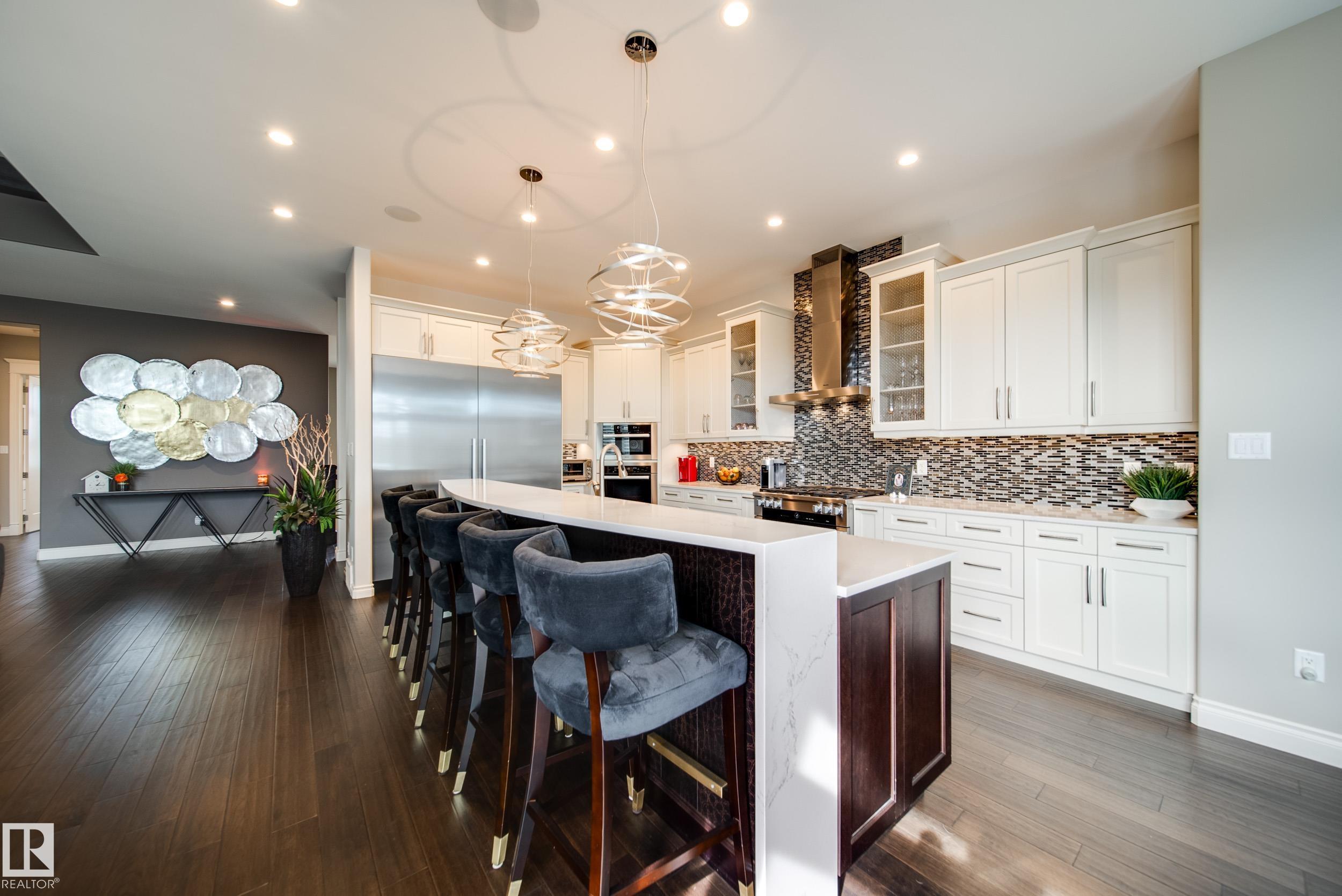 Perched high above the Saskatchewan River, this hand-crafted masterpiece blends luxury, comfort, and effortless entertaining. The rare reverse walk-out basement sets the stage with a private theatre, wet bar, fitness room, and two spacious bedrooms. A striking leather-textured feature wall and whimsical staircase guide you to the main floor, where a timeless palette evokes sophistication and serenity. The chef-inspired kitchen shines with two-toned cabinetry, quartz counters, professional-grade appliances, and statement lighting--seamlessly flowing into the dining space and out to a private deck. Designed for unforgettable gatherings, the outdoor retreat offers a pergola, hot tub, built-in BBQ, and fire pit. The stylish primary suite redefines luxury living with a glamorous wardrobe room, spa-inspired steam ensuite, and a private balcony overlooking the ravine. A home that is as magnificent as it is unforgettable. Unobstructed views of the river, triple car garage with in floor heat, plus irrigation!