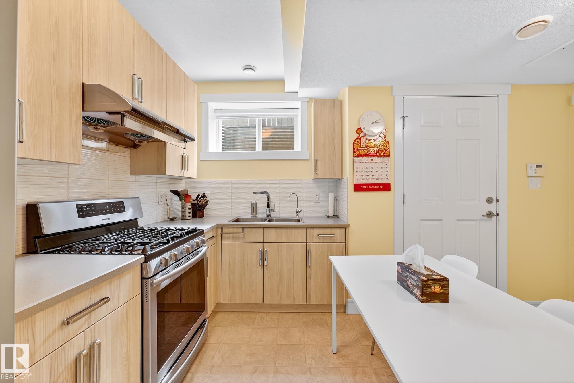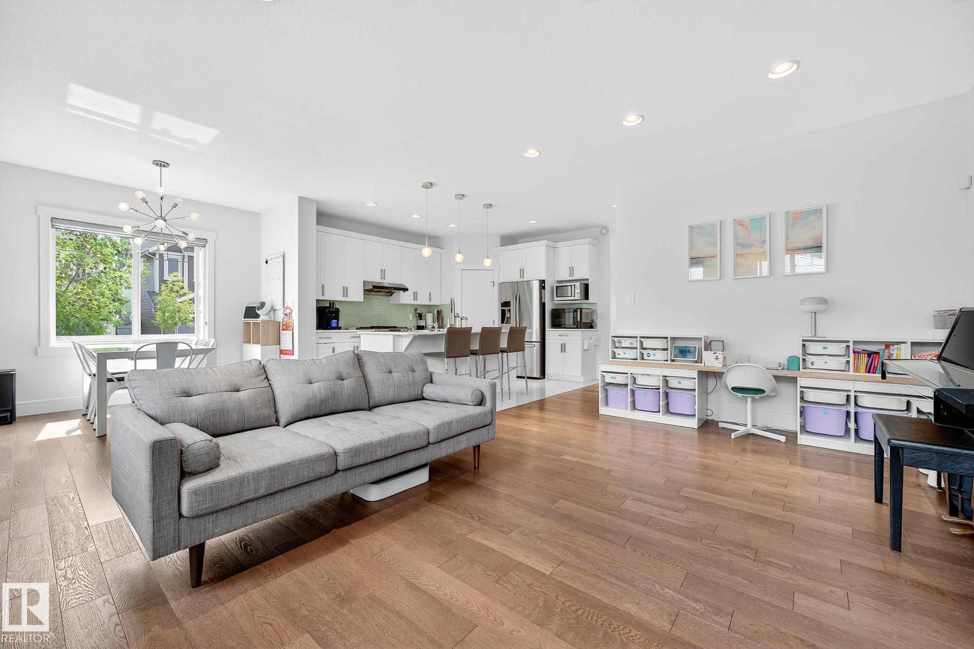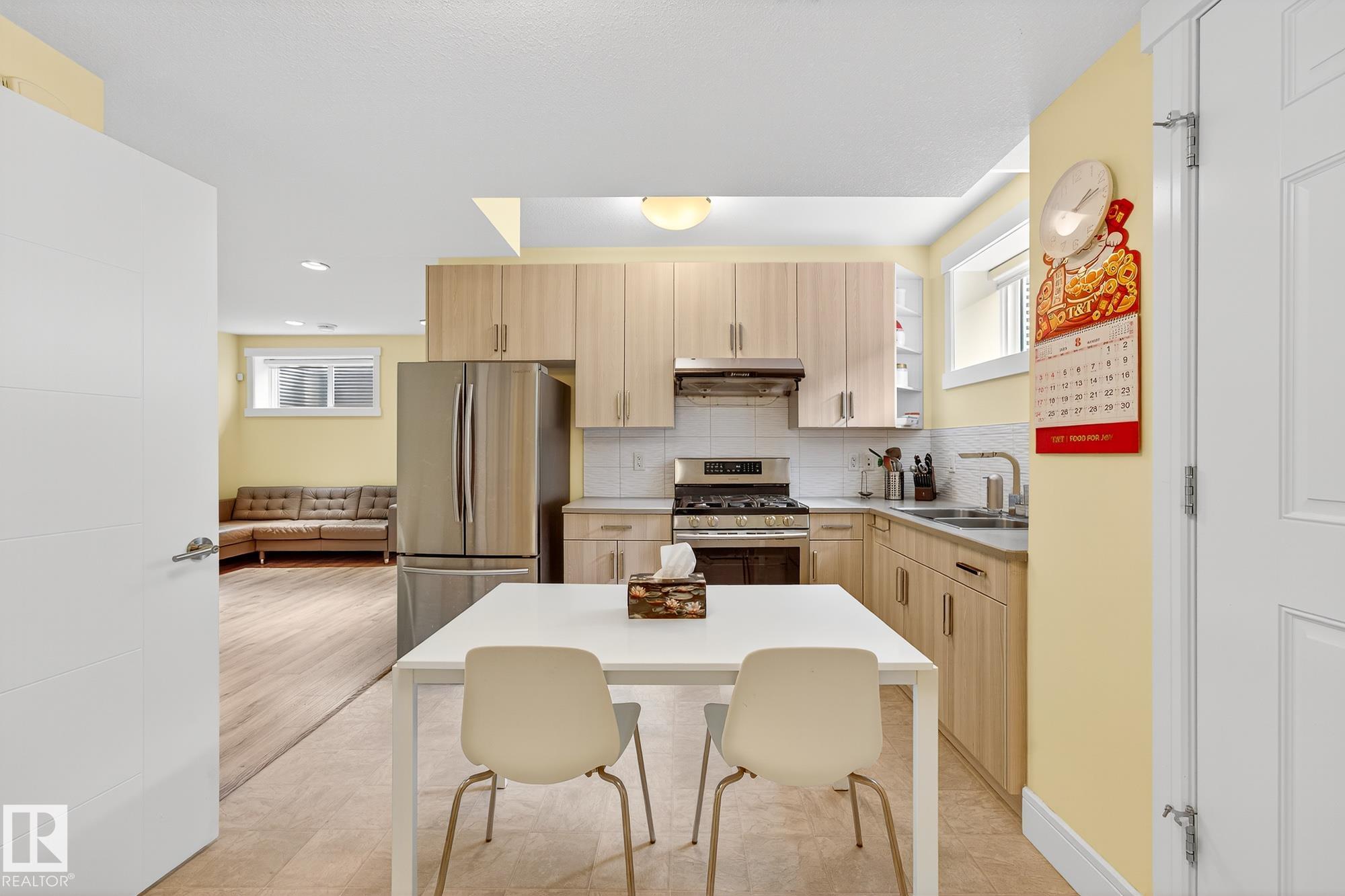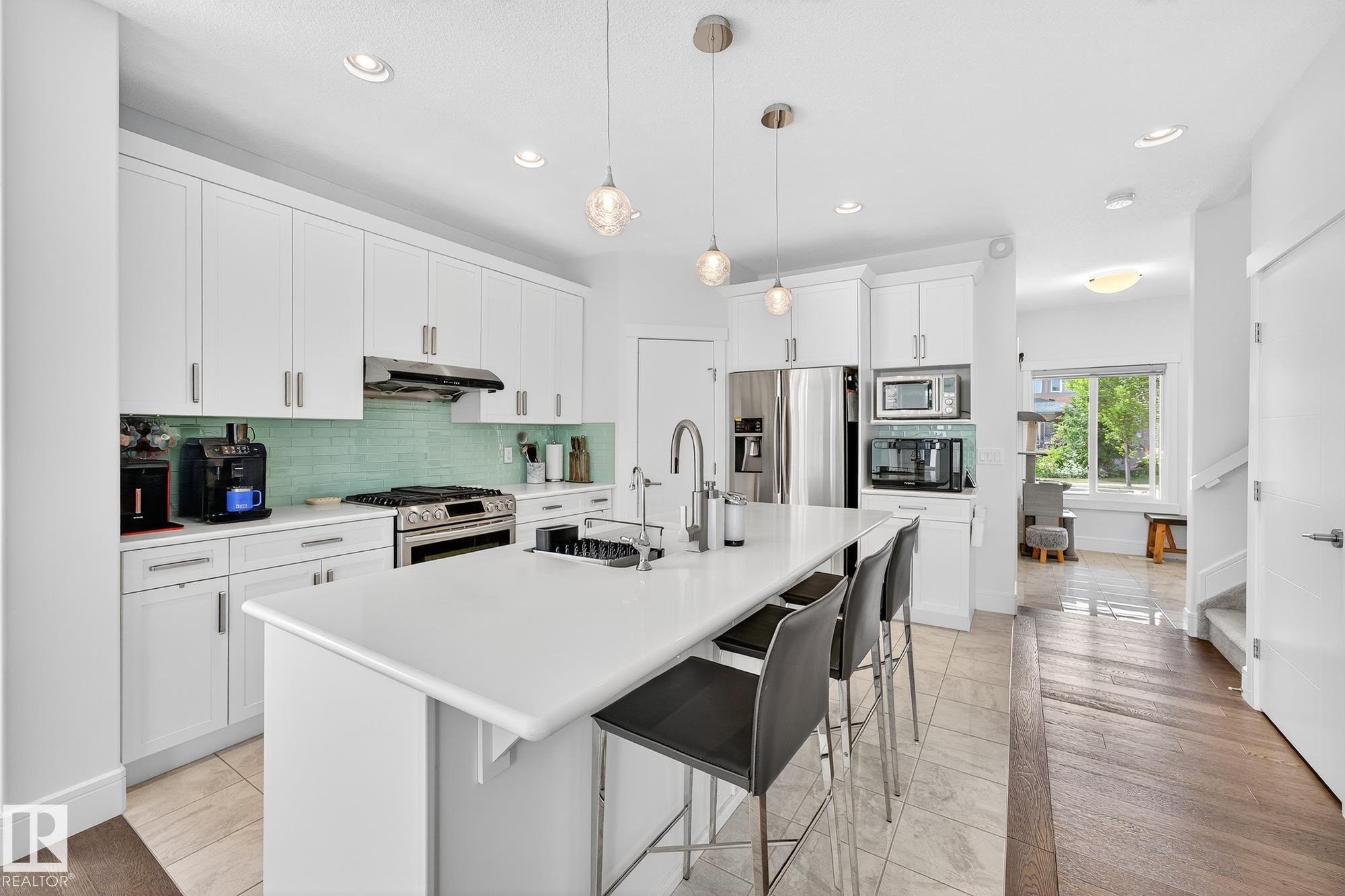 Immaculate CORNER LOT home in Griesbach! Built in 2015 by Coventry Homes, this 5-bed, 3.5-bath gem offers nearly 3,000 sq. ft. of living space with aLEGAL basement suite. Boasting 10/10 curb appeal, the expansive front porch features dual entrances, including private access to the basement suite. Themain floor includes a functional office and a chef's kitchen with quartz counters, large island, stainless steel appliances, gas stove, and abundant naturallight. Upstairs, the primary retreat impresses with a 5-pc ensuite, TWO walk-in closets, and vanity, plus 2 more bedrooms, laundry, 4-pc bath, and aspacious bonus room. The suite offers its own kitchen with gas stove, living room, bedroom with walk-in, full bath, and laundry. Added upgrades: central A/C,turf landscaping, water softener, and reverse osmosis. All in Griesbach, known for scenic lakes, trails, playgrounds, schools, and quick access to shopping,dining, and downtown. Come check it out!