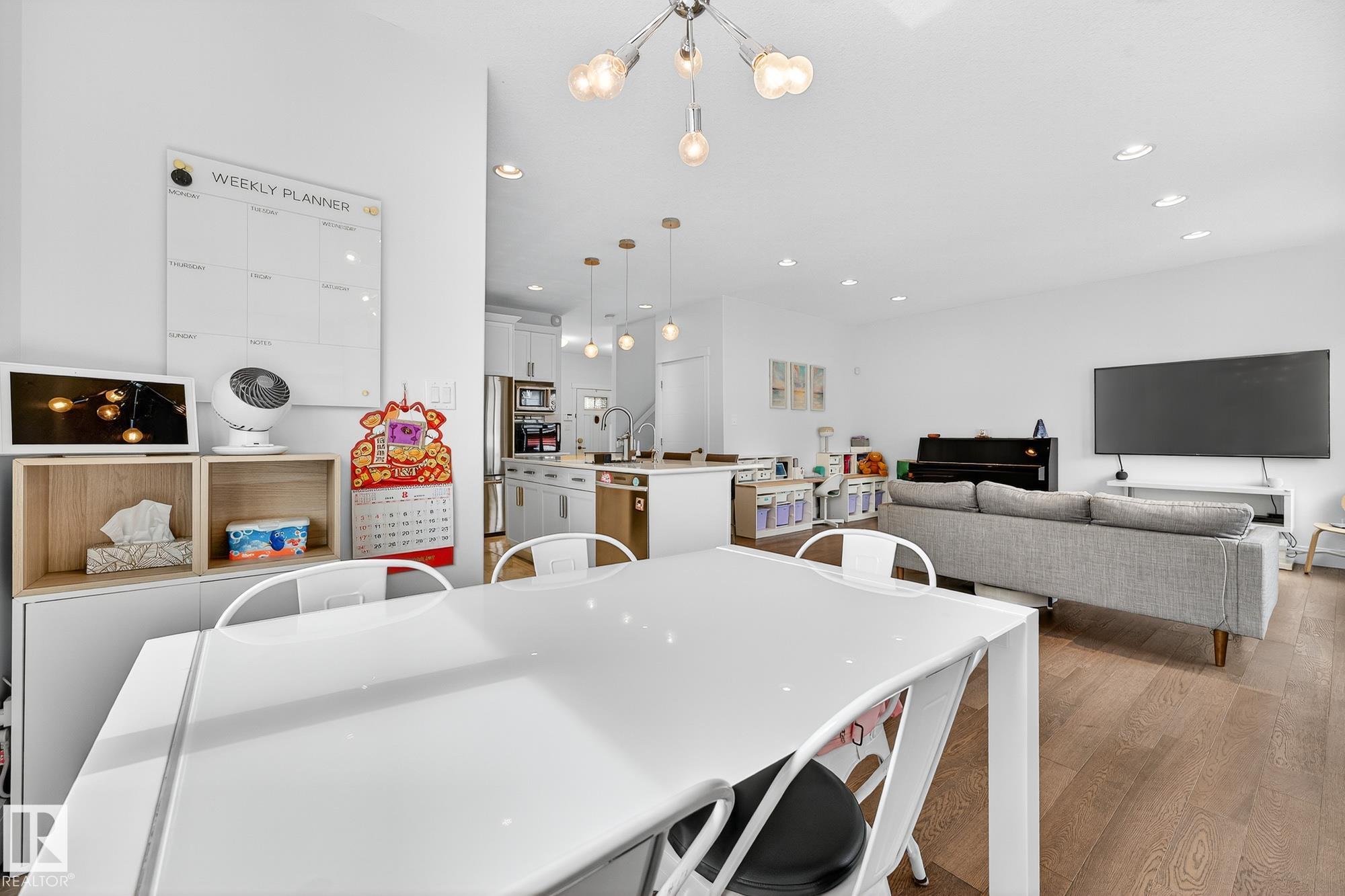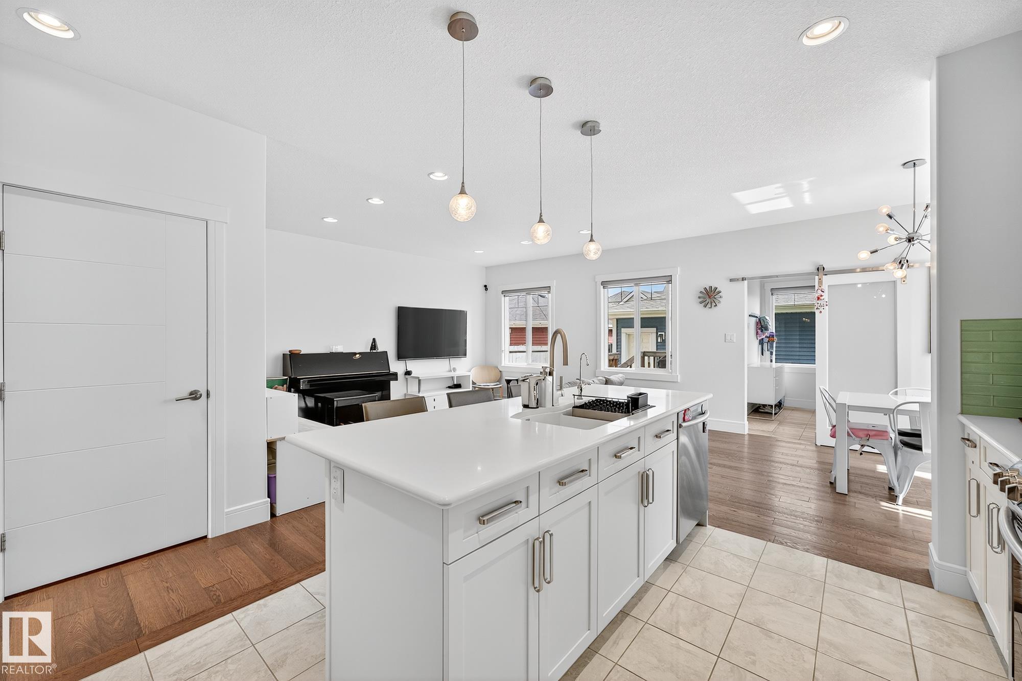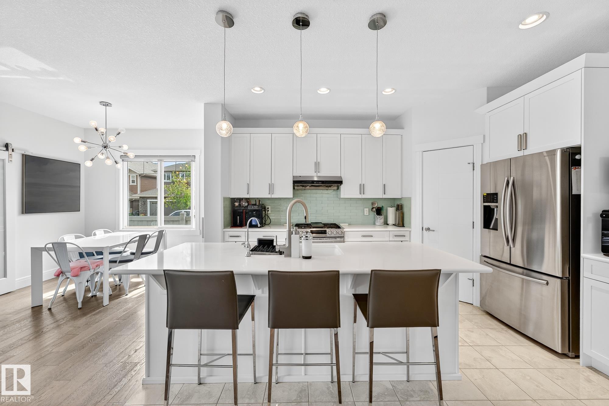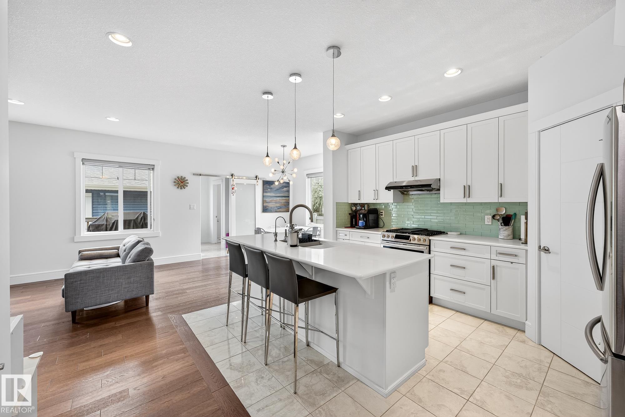 Immaculate CORNER LOT home in Griesbach! Built in 2015 by Coventry Homes, this 5-bed, 3.5-bath gem offers nearly 3,000 sq. ft. of living space with aLEGAL basement suite. Boasting 10/10 curb appeal, the expansive front porch features dual entrances, including private access to the basement suite. Themain floor includes a functional office and a chef's kitchen with quartz counters, large island, stainless steel appliances, gas stove, and abundant naturallight. Upstairs, the primary retreat impresses with a 5-pc ensuite, TWO walk-in closets, and vanity, plus 2 more bedrooms, laundry, 4-pc bath, and aspacious bonus room. The suite offers its own kitchen with gas stove, living room, bedroom with walk-in, full bath, and laundry. Added upgrades: central A/C,turf landscaping, water softener, and reverse osmosis. All in Griesbach, known for scenic lakes, trails, playgrounds, schools, and quick access to shopping,dining, and downtown. Come check it out!