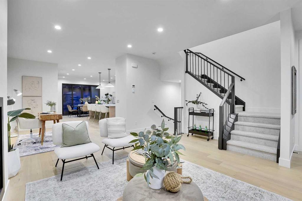 Unparalleled opportunity combining a legacy location on the park in desirable West Mount Pleasant, quality construction and exceptional design. This is your chance to own a brand new home with warranty in a coveted neighbourhood by a quality builder - Saville Homes. Showcasing timeless European inspired design and craftsmanship this stunning semi-detached home features a white brick facade, and Juliet balcony off the master bedroom. Large North facing windows offer serene views towards the park and offer a vantage to enjoy the all-season park with playground, fields and hockey rink in winter. The interior is modern yet timeless with an open floorplan design offering unique furniture configurations. The high-end kitchen features quartz countertops, and solid slab backsplash, two tone cabinets with white oak island and lower cabinets and sprayed shaker uppers. Engineered Oak Hardwood can be found throughout the main level. Beyond the kitchen is a dining area that opens to the rear patio with gas line and landscaped back yard with sod and new fence. Upstairs features a large hotel-inspired primary suite with dual closets and large spa-like 5-piece ensuite. The primary suite features views to the park and large sliding glass doors with Juliet balcony. Upstairs is a full sized laundry room with sink and two additional generous sized bedrooms that share a 5 piece bath with dual sink vanity. The lower level is fully finished with wet-bar in the large living area, bedroom and a separate office/den. Truly a unique offering facing the park and steps to Confederation Park in Calgary's inner-city, this home won't last long at this price. Book your private viewing today! (31606061)
