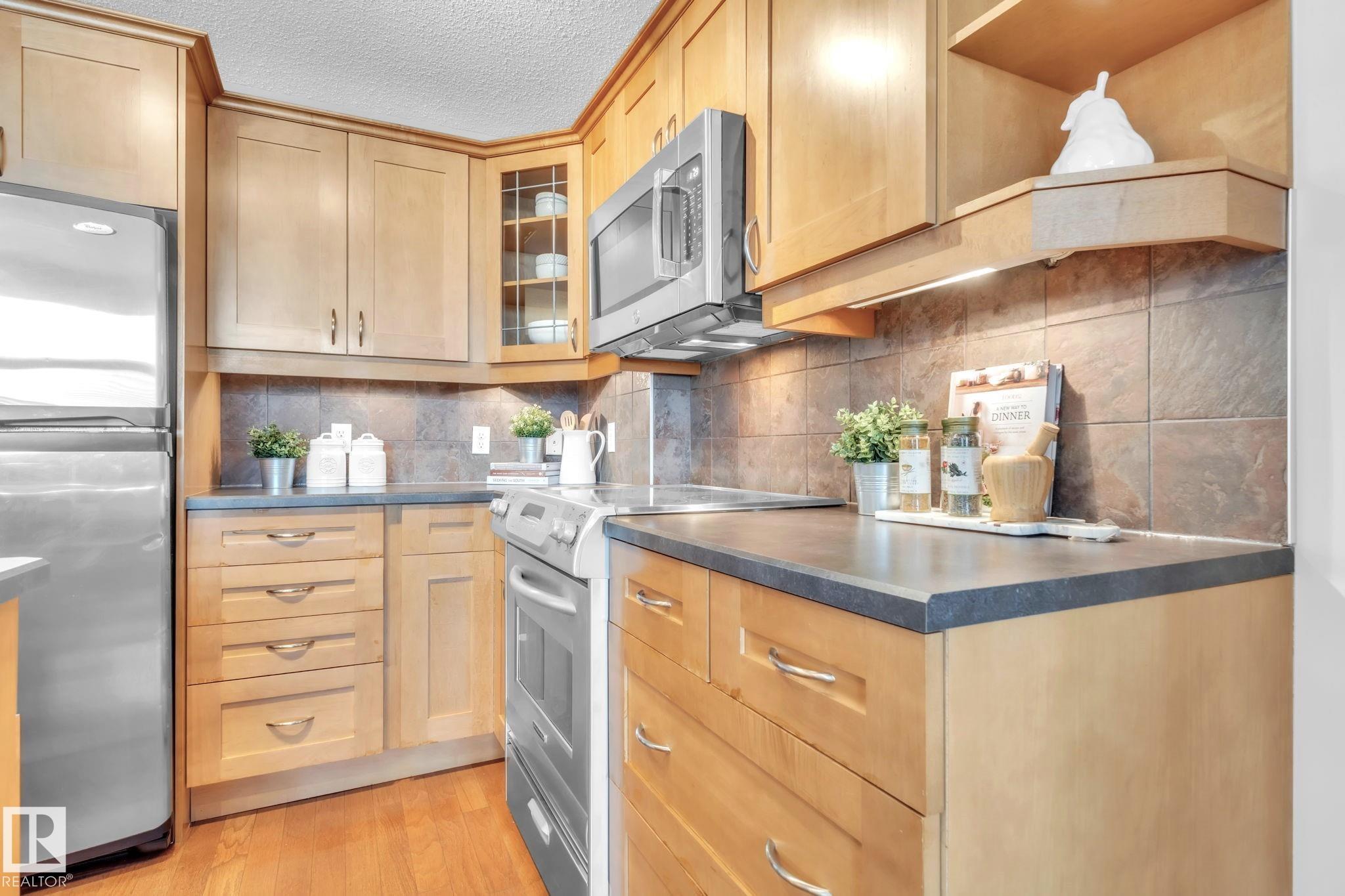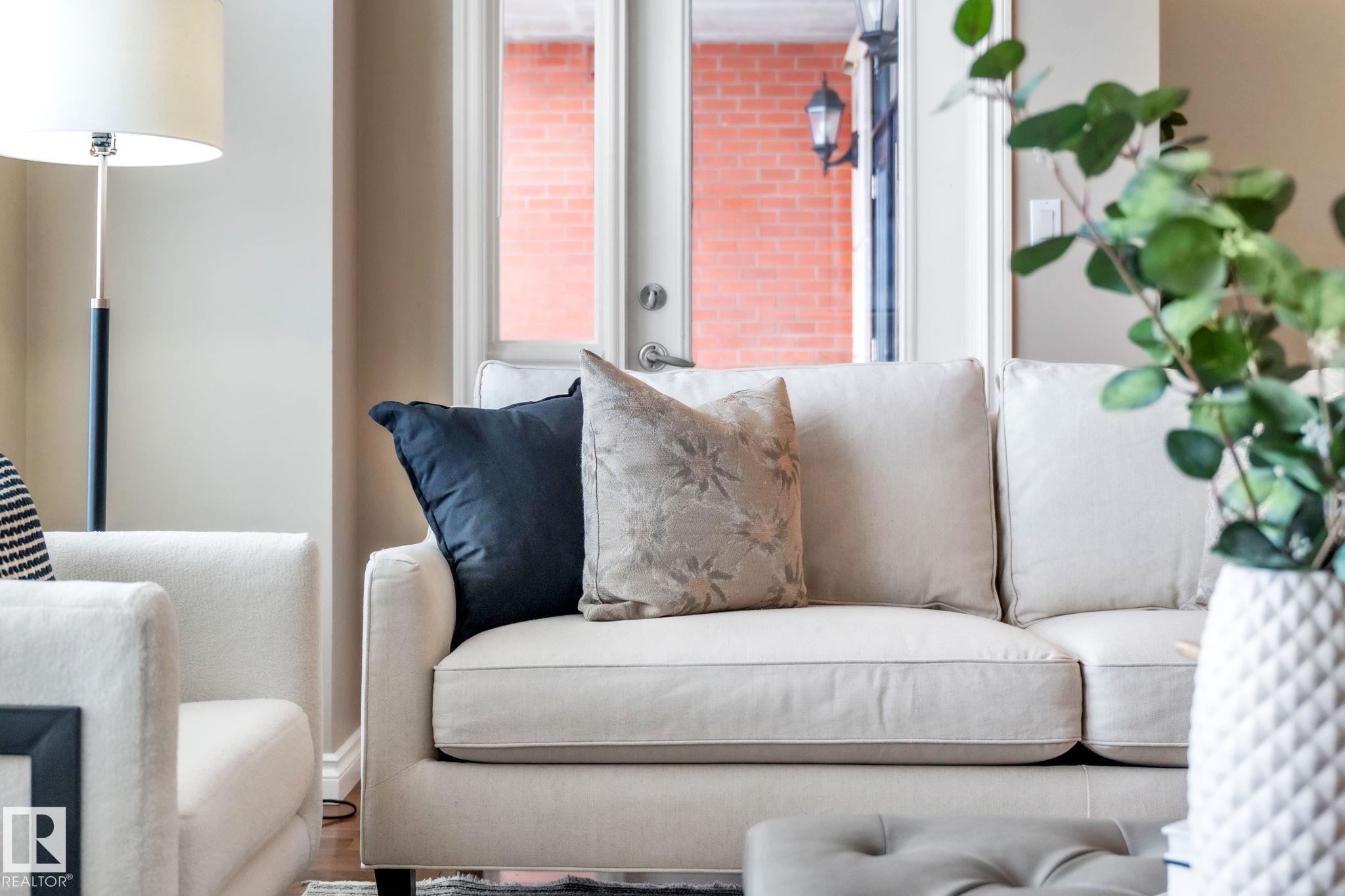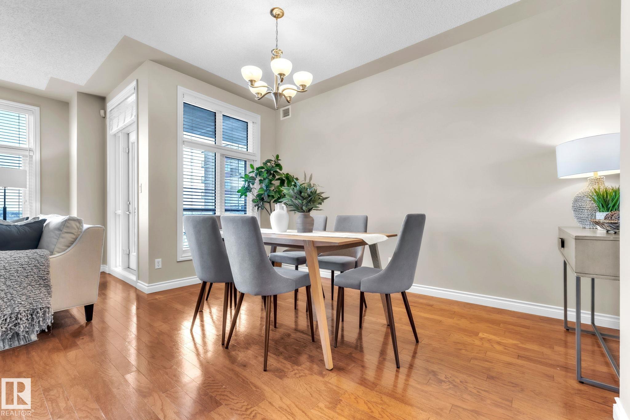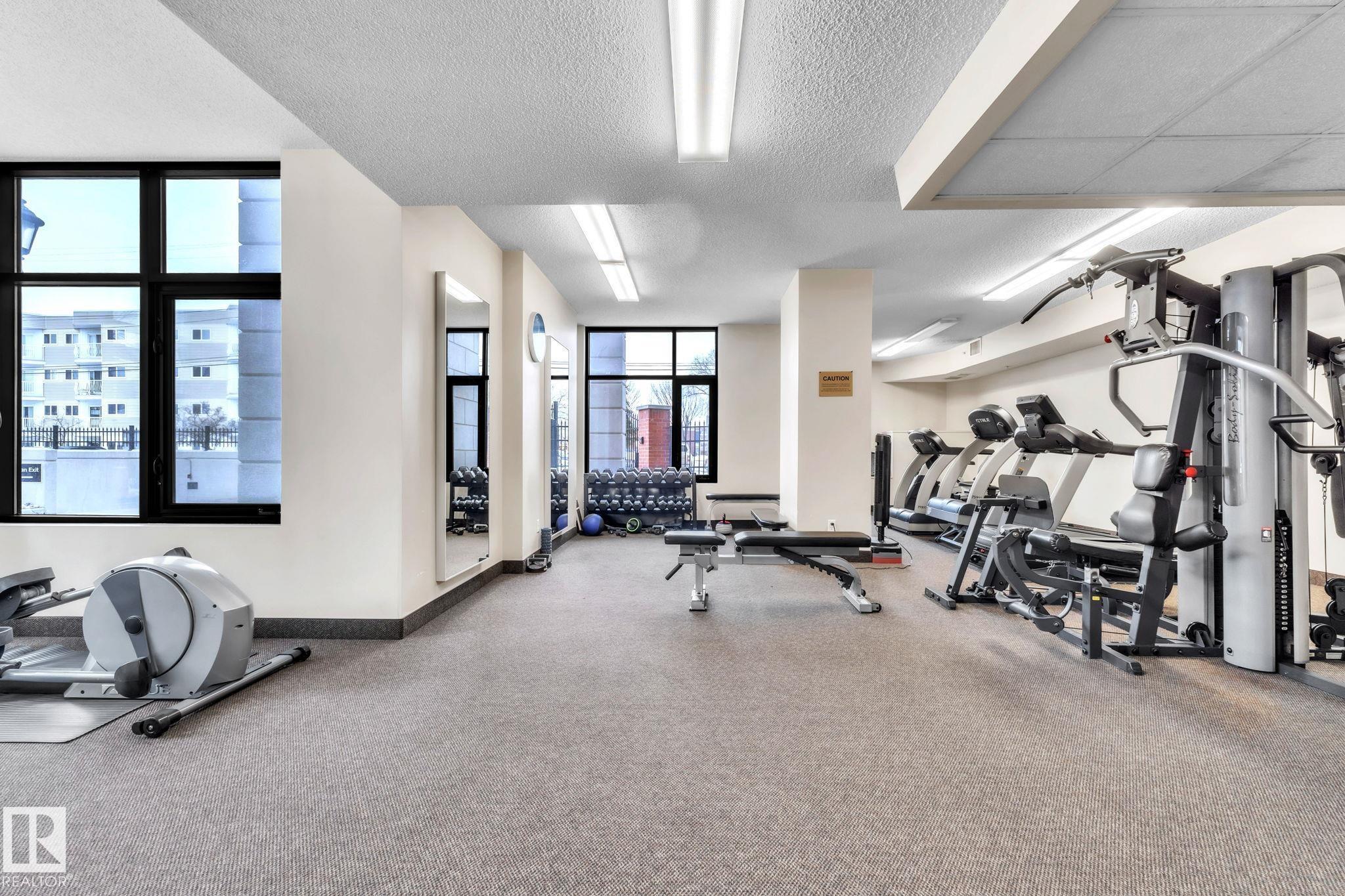 DOWNTOWN EDMONTON CONDO BOASTING SPECTACULAR RIVER VALLEY VIEWS & 2 PARKING STALLS! This 7th-floor, 1,164 sq. ft. condo features 1 bedroom + den, 2 full baths, and 2 side-by-side parking stalls (located on P2, 142 & 176), each with 2 large, lockable storage cages (252 & 253). Features include 9' ceilings, hardwood floors, NEW floor-to-ceiling energy-efficient TRIPLE PAIN WINDOWS, A/C, a gas fireplace, Hunter Douglas blinds, and a LARGE SOUTHEAST covered deck w/gas BBQ hookup that offers unrestricted views of the River Valley! Open kitchen with Maple cabinets and deluxe stainless-steel appliances. The master bedroom has patio doors, a 4-piece ensuite with a separate shower and a soaker tub, and a large walk-in closet. Double French doors lead to the den, which is ideal for an office or bedroom. Building amenities: an exercise room & a gated community. Condo Fees $877 mo. heat+water+electricity. Perfect location for professionals working Downtown, or retirees who enjoy dining, Rogers Place, and the Stadium.