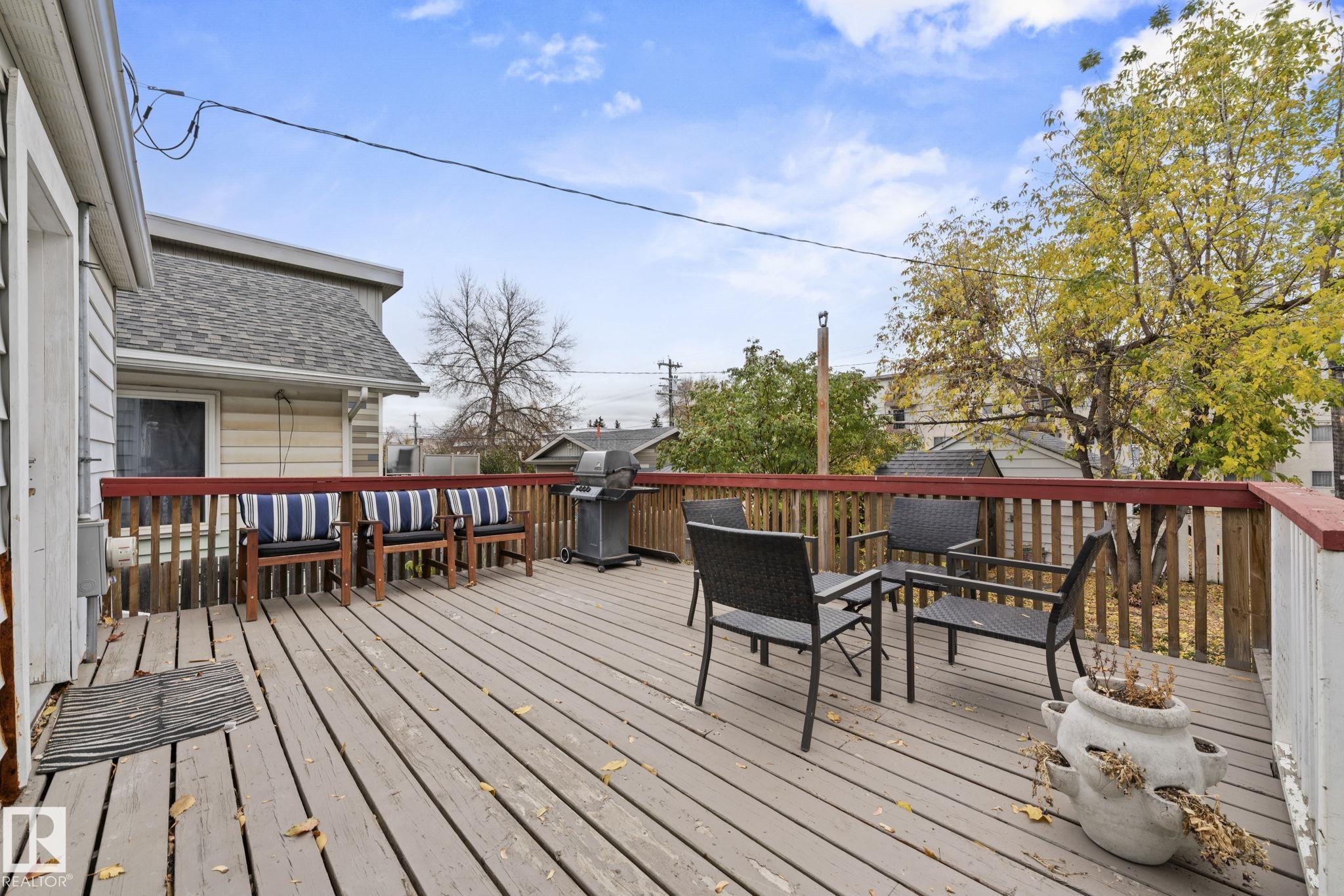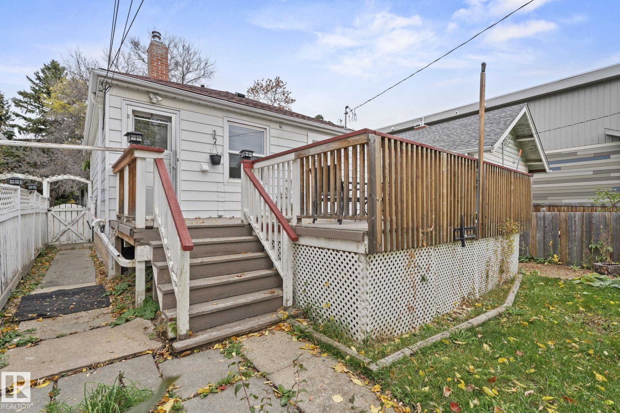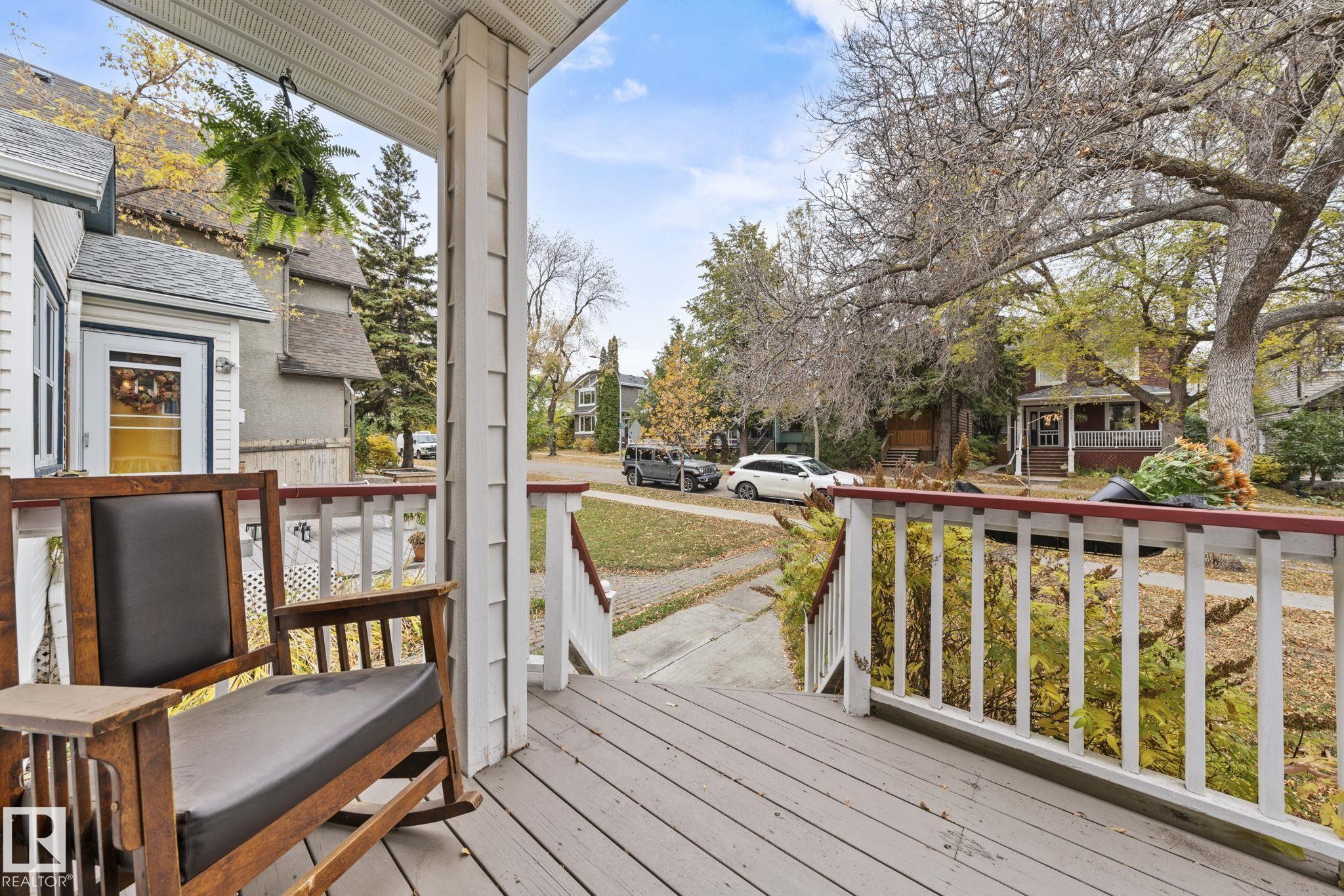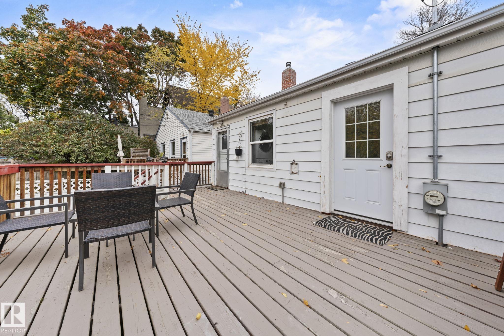Savvy investors and lifestyle buyers--this charming Strathcona bungalow is the one you've been waiting for! Currently set up with separate up and down units; easily converted back to a full bungalow. The main floor features a lovely porch, spacious living room and primary bedroom overlooking a quiet, tree-lined one-way street. The roomy kitchen has in-suite laundry and opens to the dining area. A stylish 4-piece bath completes the main level. Step out to the spacious south-facing deck overlooking the landscaped yard. From the deck you can access the private entrance to the lower unit. Head downstairs to an open living/dining area, a cozy kitchen, its own laundry, a spacious bedroom with walk-in closet, and 3-piece bath. Recent upgrades include updated electrical, windows, flooring, roof, and high efficiency furnace. This is your chance to own a piece of Old Strathcona--one of Edmonton's most sought-after neighborhoods--steps from Mill Creek Ravine, Whyte Ave, UofA, and great local restaurants and cafes!