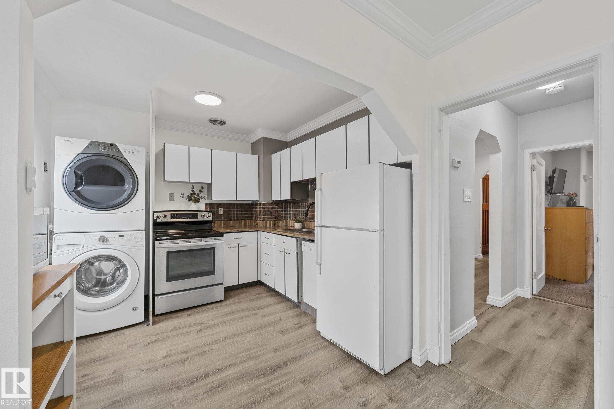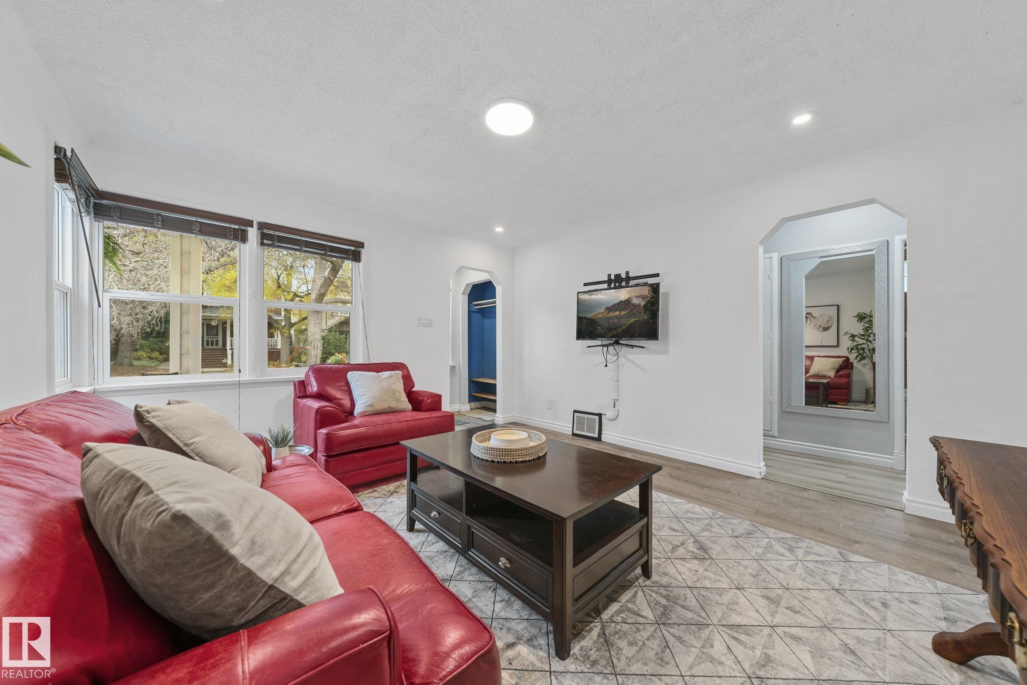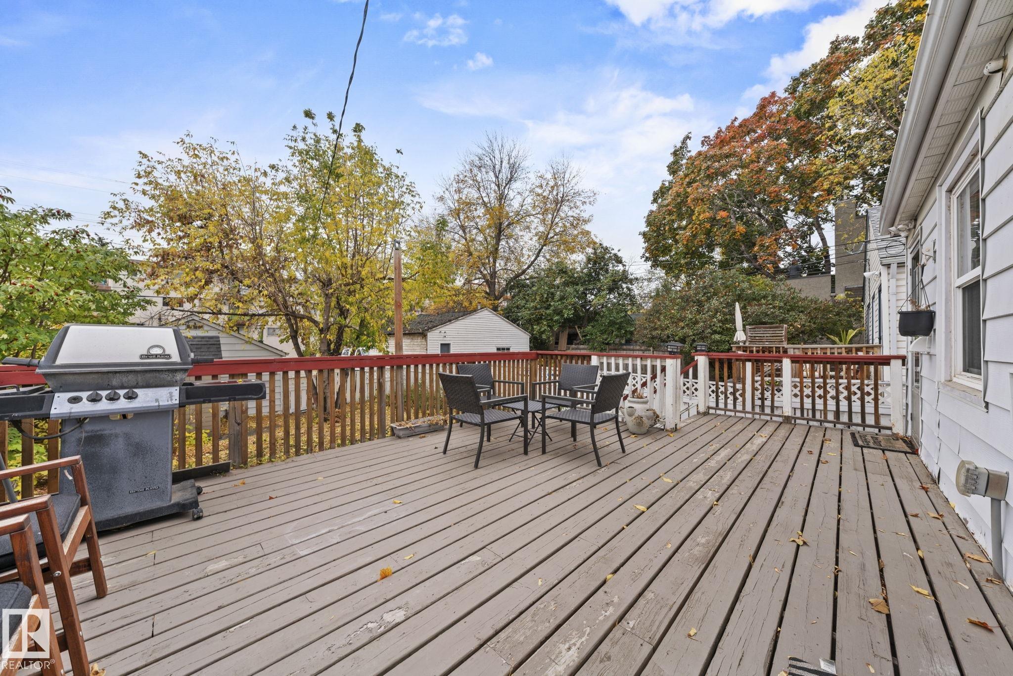 Savvy investors and lifestyle buyers--this charming Strathcona bungalow is the one you've been waiting for! Currently set up with separate up and down units; easily converted back to a full bungalow. The main floor features a lovely porch, spacious living room and primary bedroom overlooking a quiet, tree-lined one-way street. The roomy kitchen has in-suite laundry and opens to the dining area. A stylish 4-piece bath completes the main level. Step out to the spacious south-facing deck overlooking the landscaped yard. From the deck you can access the private entrance to the lower unit. Head downstairs to an open living/dining area, a cozy kitchen, its own laundry, a spacious bedroom with walk-in closet, and 3-piece bath. Recent upgrades include updated electrical, windows, flooring, roof, and high efficiency furnace. This is your chance to own a piece of Old Strathcona--one of Edmonton's most sought-after neighborhoods--steps from Mill Creek Ravine, Whyte Ave, UofA, and great local restaurants and cafes!