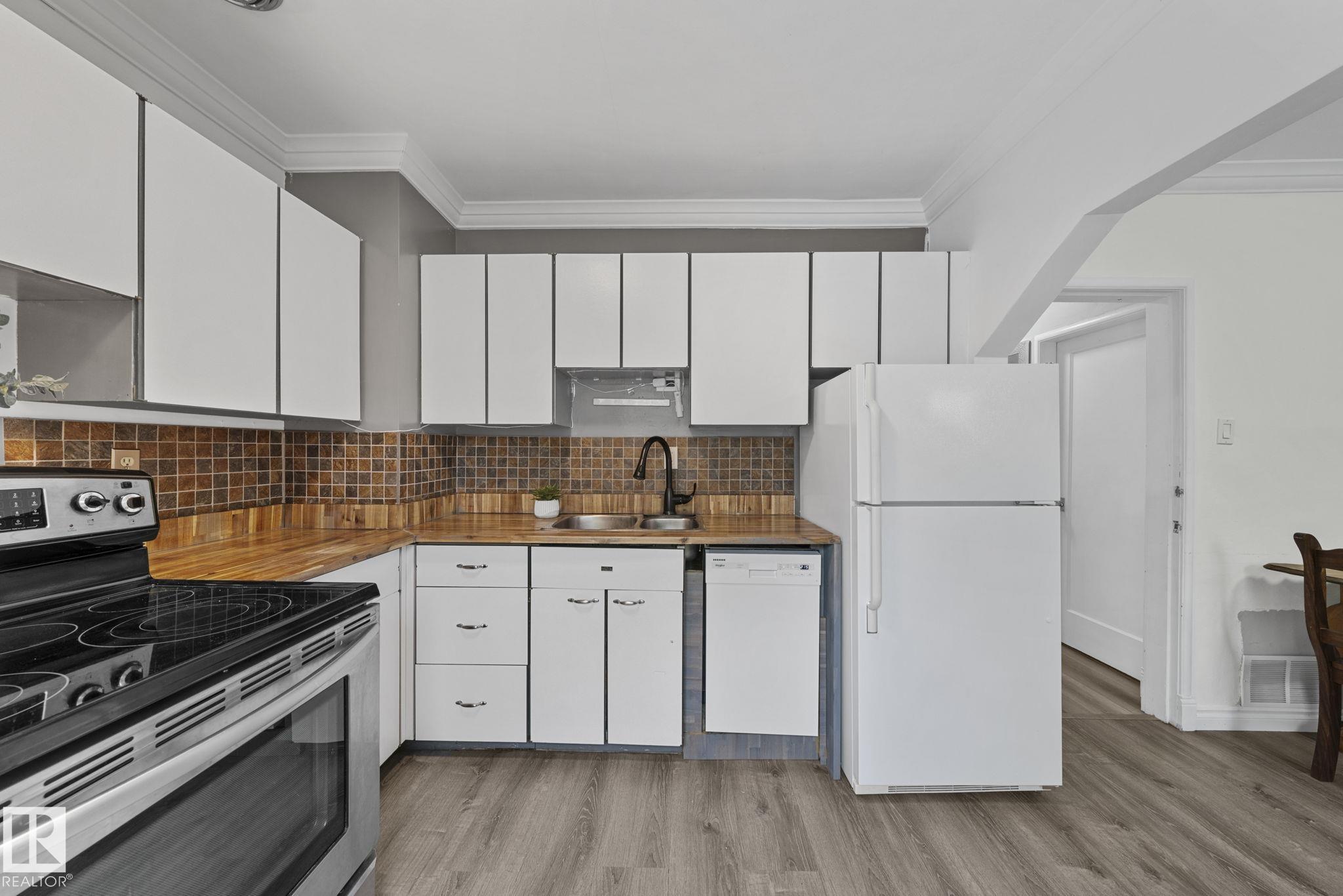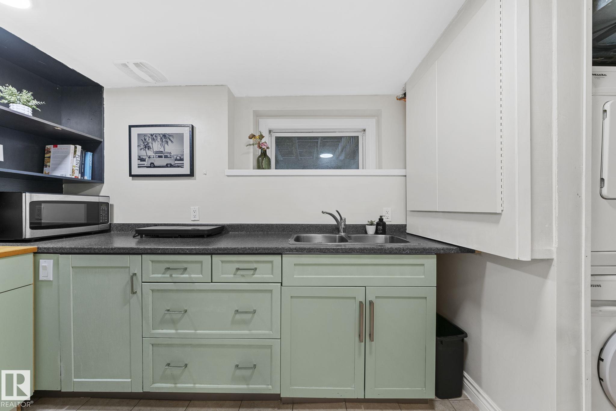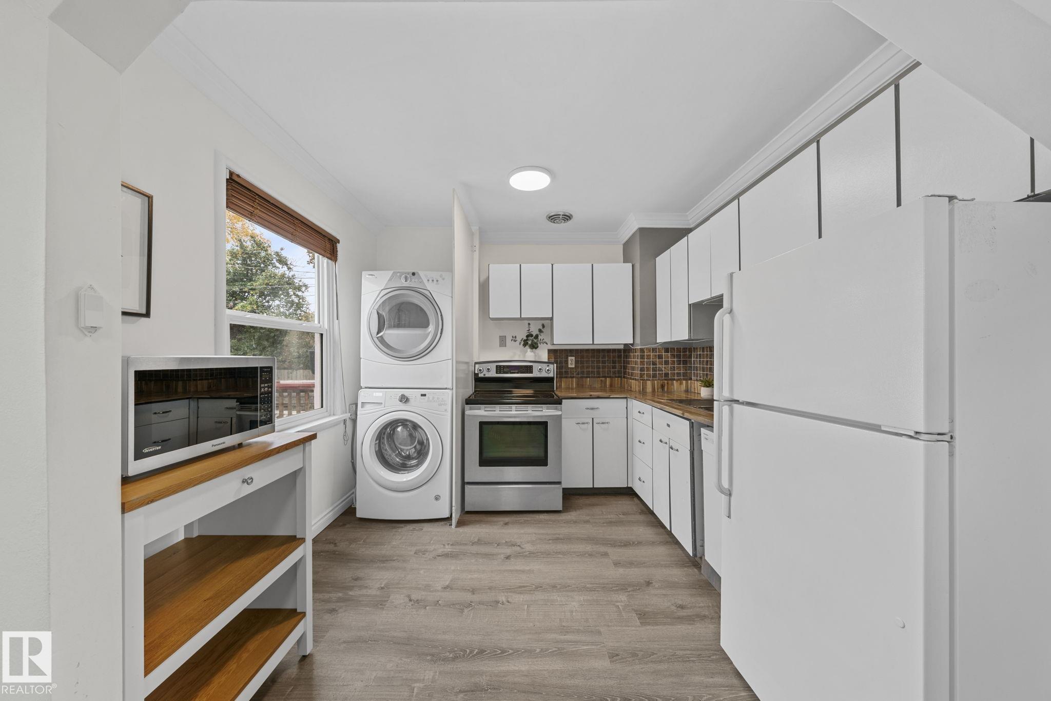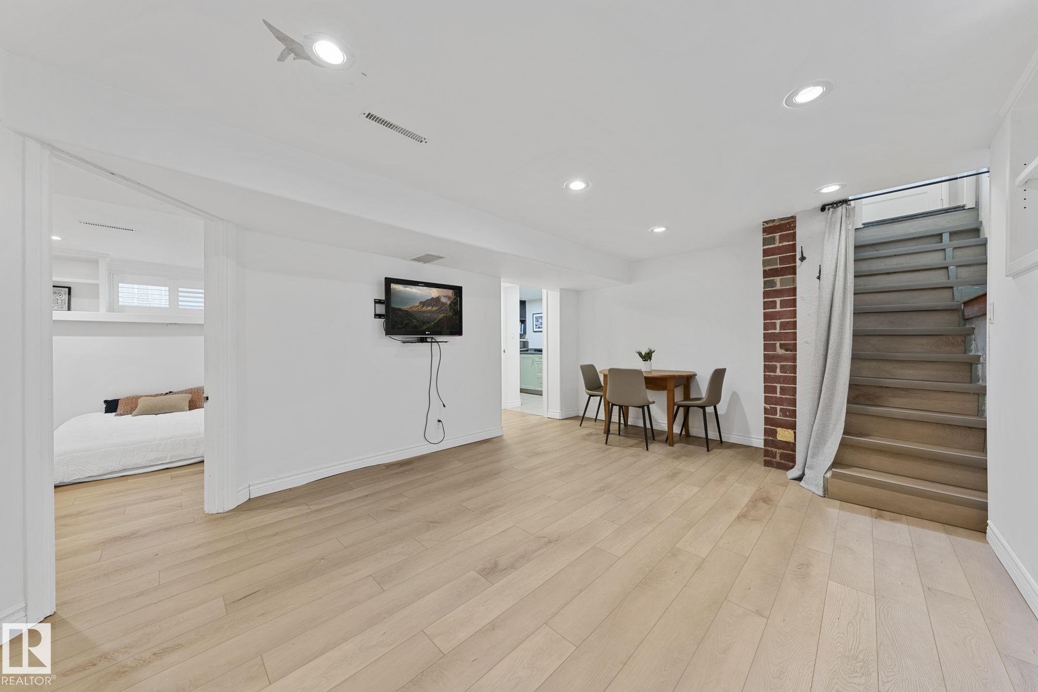 Savvy investors and lifestyle buyers--this charming Strathcona bungalow is the one you've been waiting for! Currently set up with separate up and down units; easily converted back to a full bungalow. The main floor features a lovely porch, spacious living room and primary bedroom overlooking a quiet, tree-lined one-way street. The roomy kitchen has in-suite laundry and opens to the dining area. A stylish 4-piece bath completes the main level. Step out to the spacious south-facing deck overlooking the landscaped yard. From the deck you can access the private entrance to the lower unit. Head downstairs to an open living/dining area, a cozy kitchen, its own laundry, a spacious bedroom with walk-in closet, and 3-piece bath. Recent upgrades include updated electrical, windows, flooring, roof, and high efficiency furnace. This is your chance to own a piece of Old Strathcona--one of Edmonton's most sought-after neighborhoods--steps from Mill Creek Ravine, Whyte Ave, UofA, and great local restaurants and cafes!